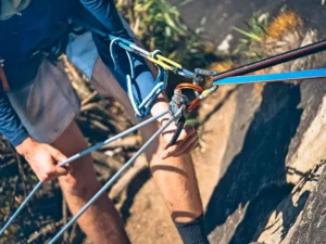Rappel safely down the rocky section with guidance from your instructor.