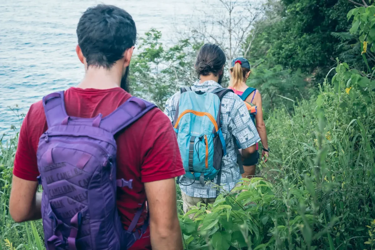 Daypack, light clothes, hiking shoes, swimsuit, towel, sunscreen, sunhat, sunglasses, snacks, water (1.5 liters), bug repellent, and your camera.